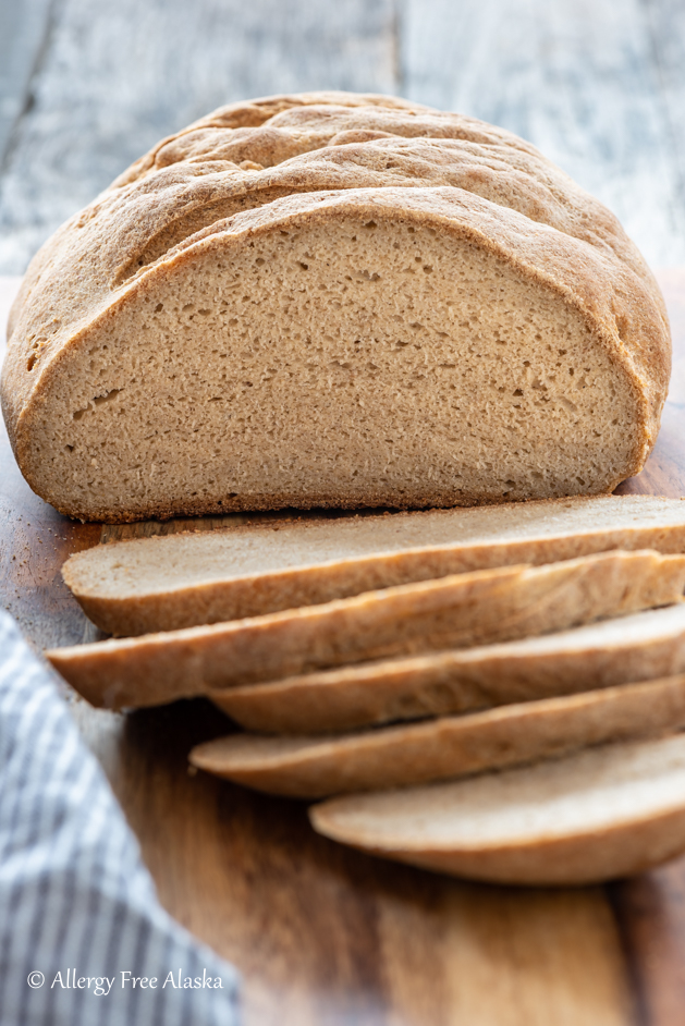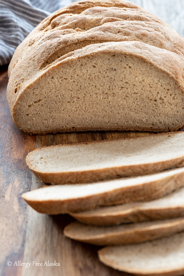 This allergy-friendly bread begs to be sliced and slathered with your favorite spread, like hummus, homemade jam, or soft dairy-free cheese. But it’s also great all-around bread for sandwiches, crostini, French toast, bread pudding, stuffing, or croutons.