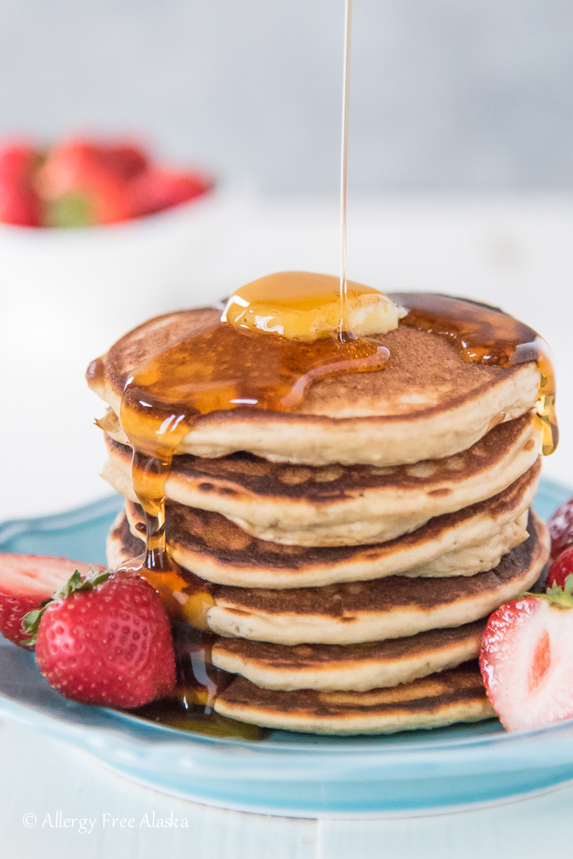 These pancakes were absolutely delicious! I made them as breakfast for dinner the other night, and my husband loved them, too, which is saying a lot, because he’s normally pretty picky about allergy friendly foods. He didn’t even realize they were gluten free until I told him. This is definitely my new go-to pancake recipe now!