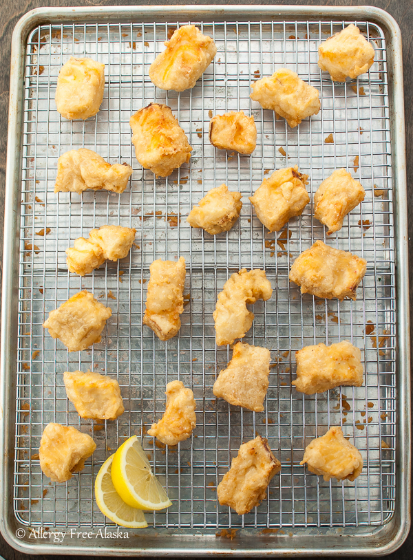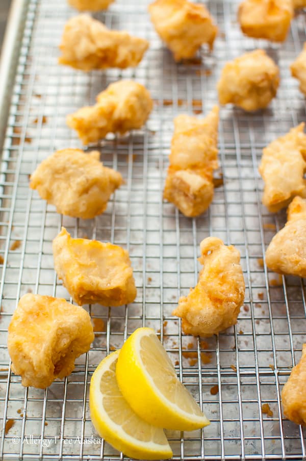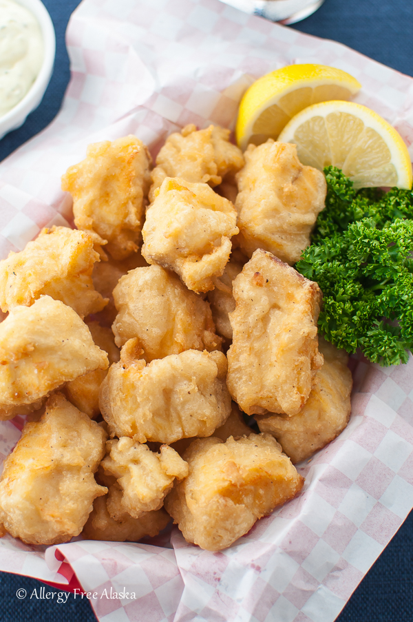 This gluten-free fish batter produces crispy and flakey gluten-free fried fish pieces. Use whatever firm white fish you have on hand; my family prefers fresh halibut or rockfish.