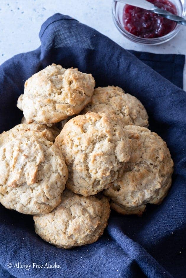 20 minutes is all you need to have these easy and scrumptious Gluten-Free Biscuits done and on the table! Top them with a pat of vegan butter and some honey, or make gluten-free breakfast sandwiches. Also vegan and dairy-free.