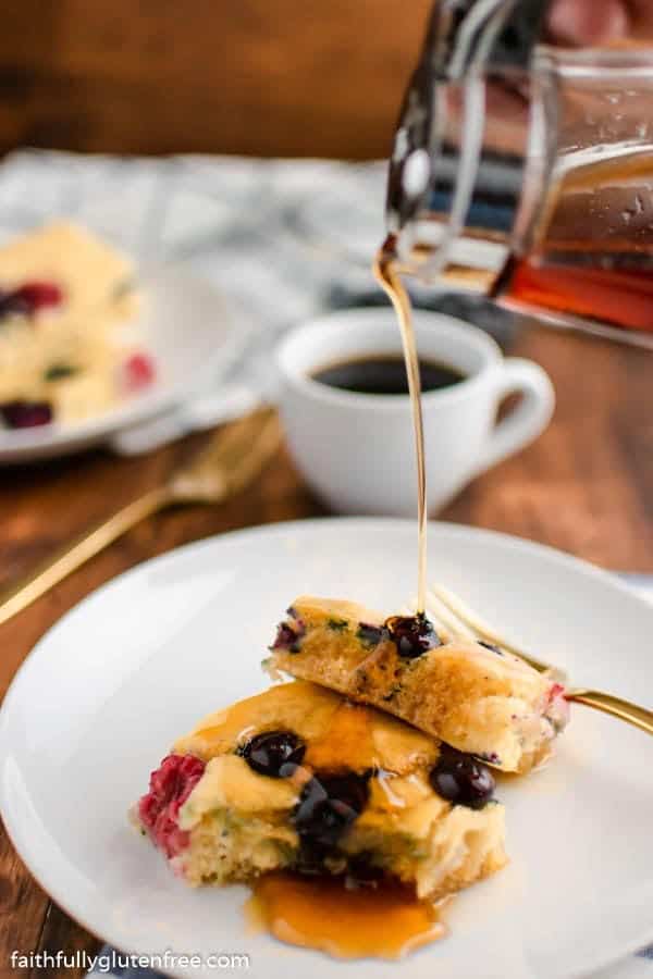 Bake up a pan of these Gluten Free Sheet Pan Pancakes from Faithfully Gluten-Free to feed a hungry breakfast or brunch crowd at one time. Easy to personalize, so everyone can enjoy their favorite pancakes.