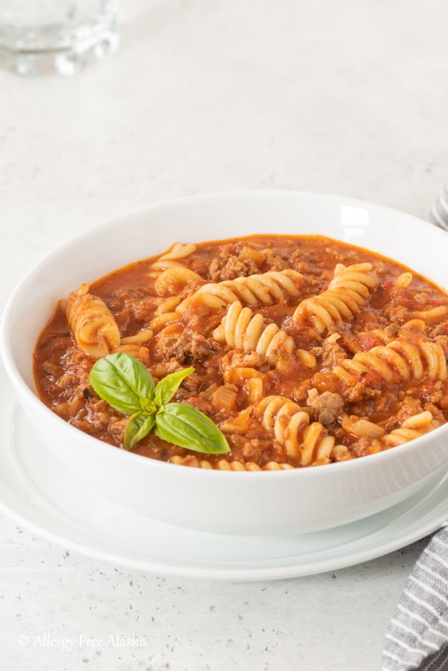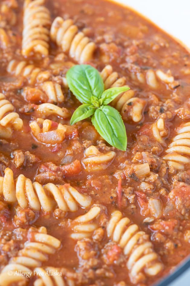 Unlike gluten-free lasagna, this hearty soup is super quick and easy to throw together (and entirely dairy-free!); it can be on the table within 30-40 minutes, from start to finish.