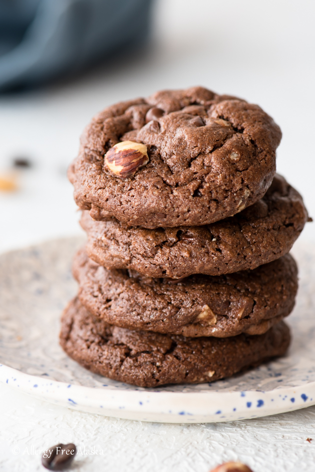 These soft and irresistible Gluten Free Mocha Hazelnut Cookies will quickly become your new favorite cookie recipe! Studded with the flavors of chocolate, coffee, and toasted hazelnuts, you will have a hard time practicing self control!