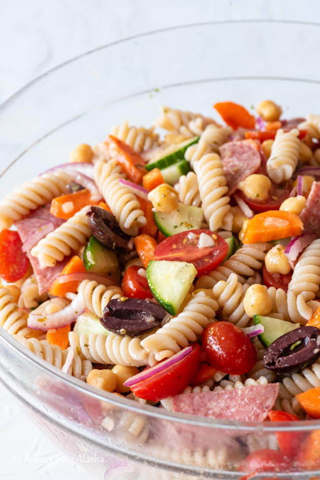 Deli Meats – We prefer salami in this gluten-free pasta salad, but you can substitute another flavorful meat, like prosciutto or even pepperoni. Just make sure it’s gluten-free and preferably uncured.