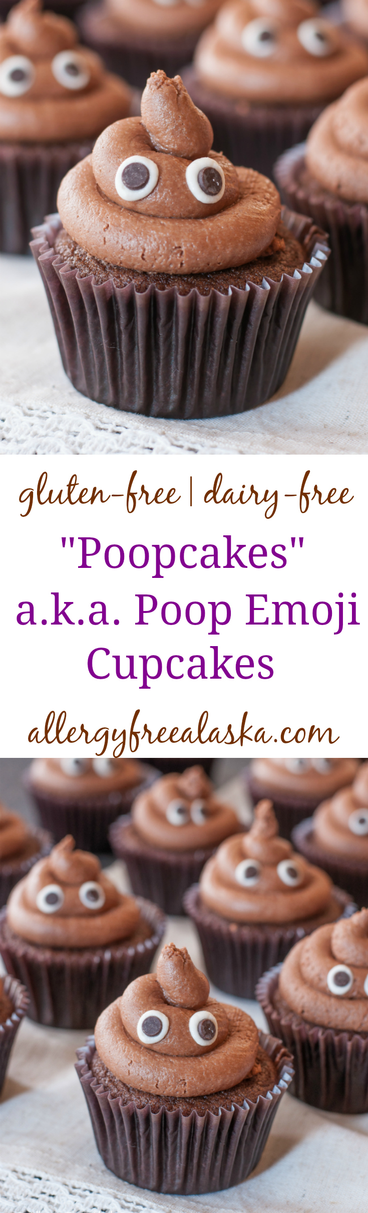 These Gluten Free "Poopcakes" Poop Emoji Cupcakes are a fun and delicious take on the poop emoji icon. They will be a hit at your next party and will most likely spark some silly conversations!