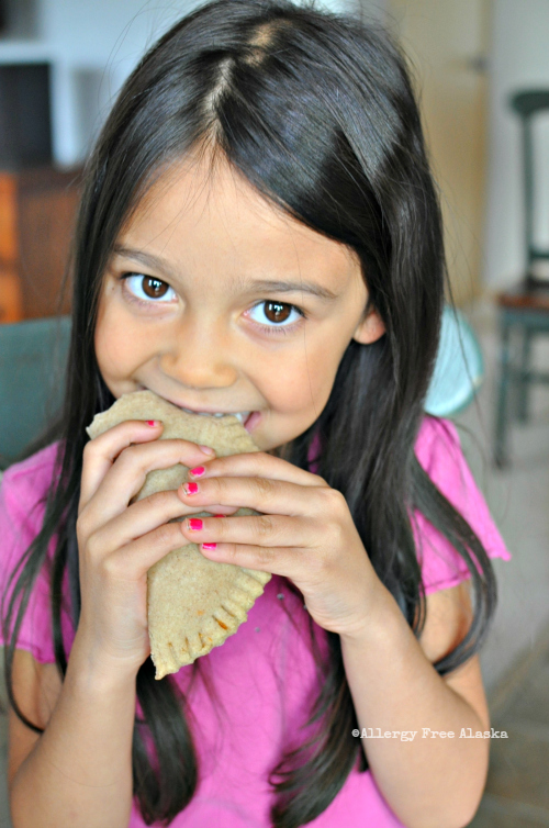 When I think back to my childhood, there are several {processed} foods that were favorites of mine, but the two I've been wanting to make over most were Hot Pockets and Pizza Rolls. These Grain-Free Aloha Pizza Pockets are my way of combining the two of those favorites, and of course making them healthier and allergy friendly. The girls honestly couldn't be happier with the end result, and they are so easy to eat; they fit in small hands nicely.