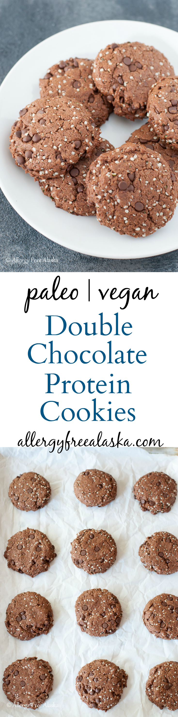 If these Paleo Vegan Double Chocolate Protein Cookies look somewhat familiar to you, it's because they are the chocolate version of my vegan, Paleo, and nut-free Protein Packed Monster Breakfast Cookies.
